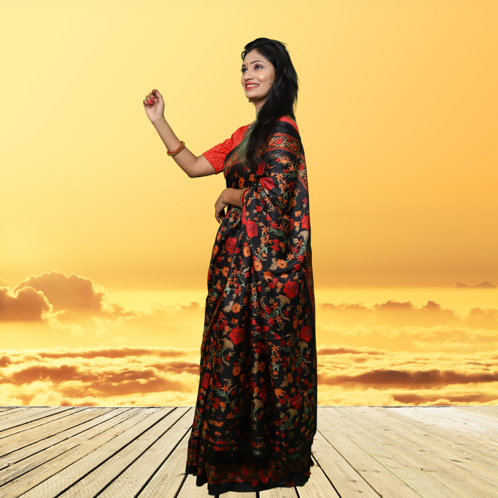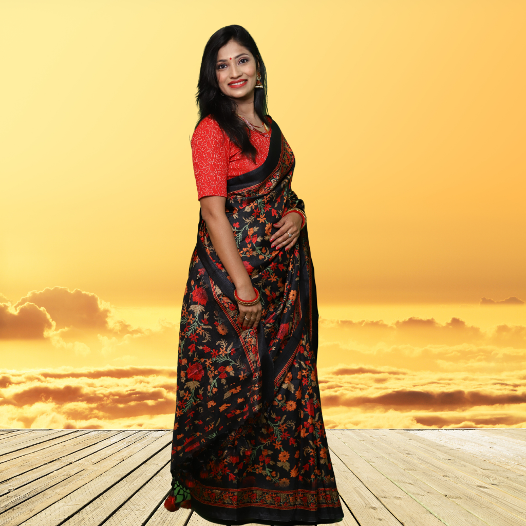 Jute Silk Saree with Digital print and Black colour