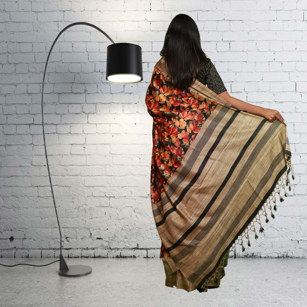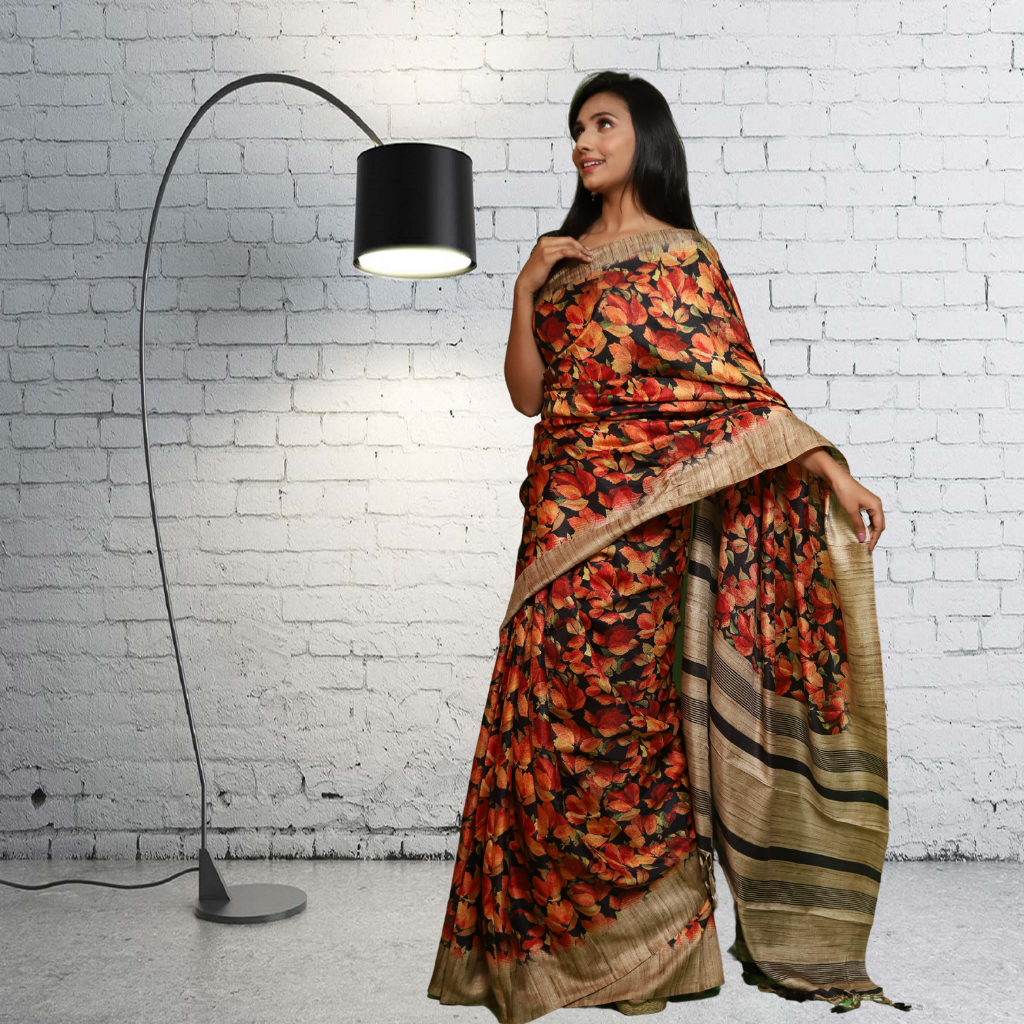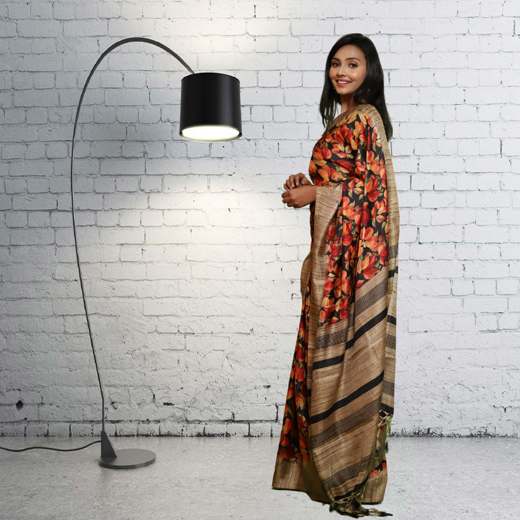 Jute Silk Saree with Digital print and Black colour