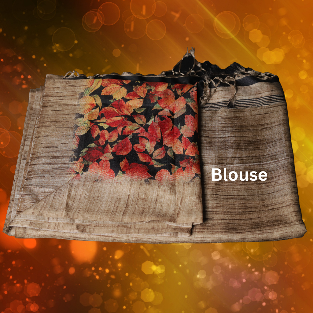 Jute Silk Saree with Digital print and Light Brown colour
