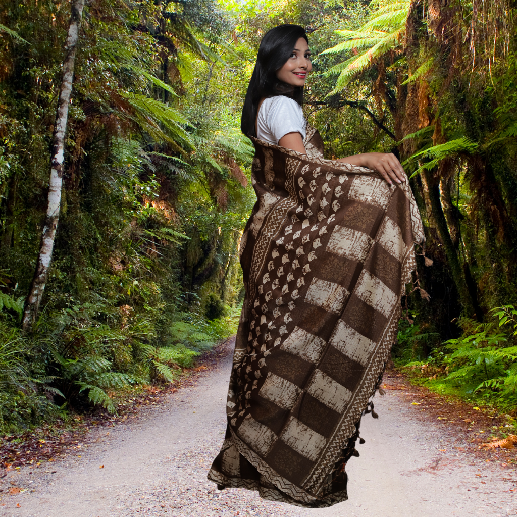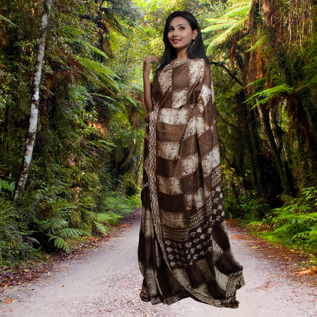 Jute Silk Saree with Digital print and Light Brown colour