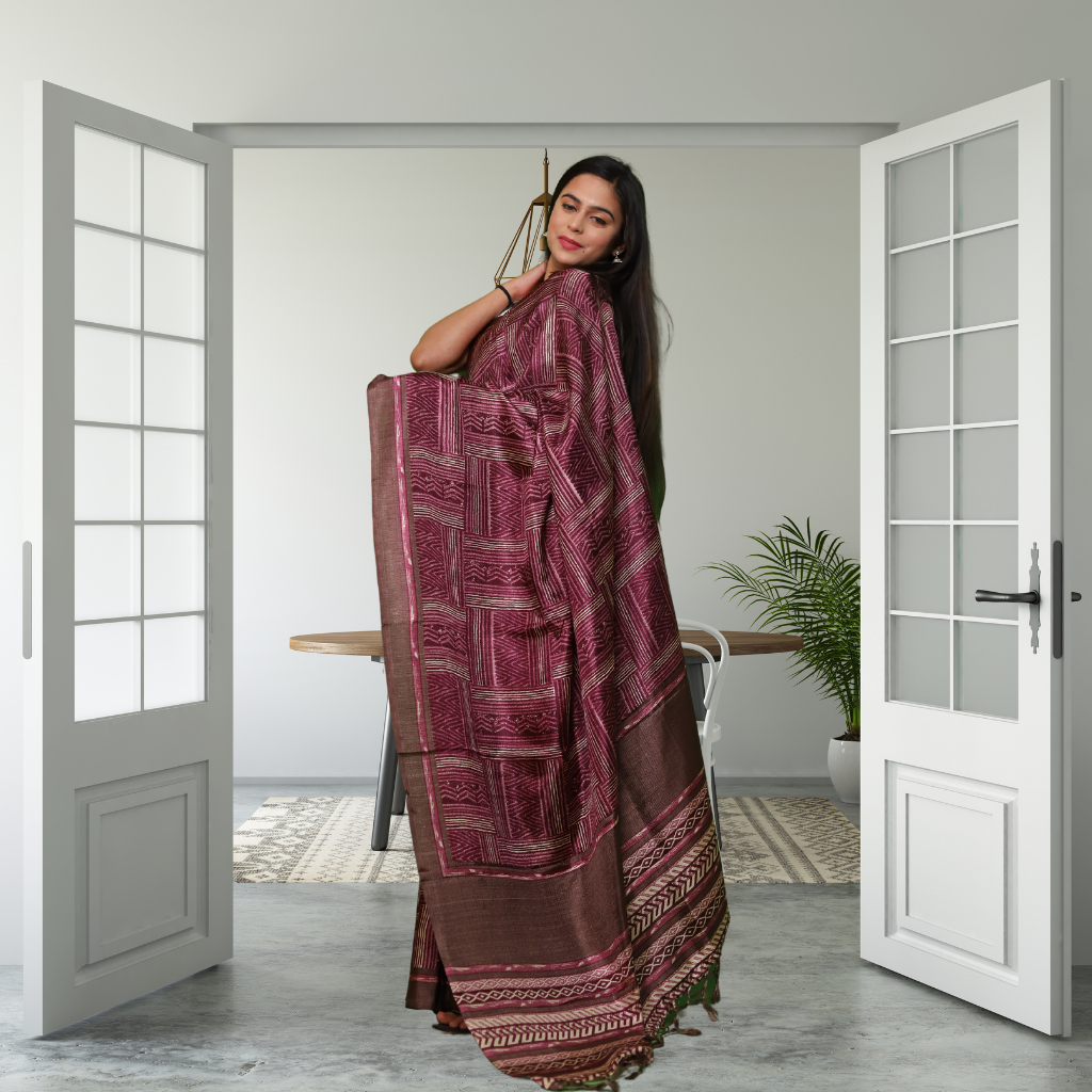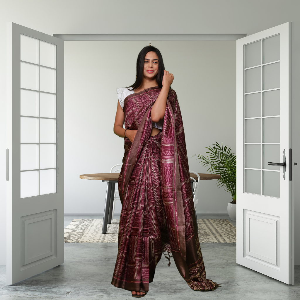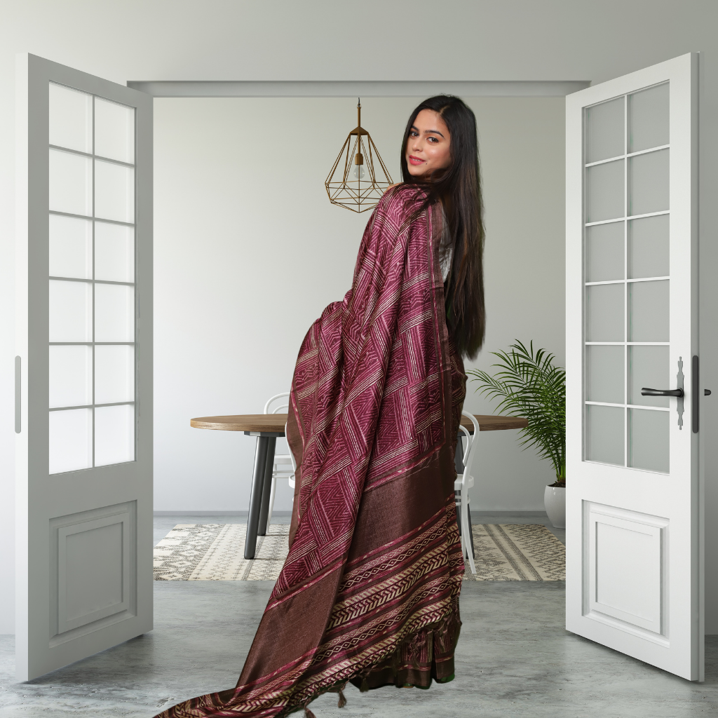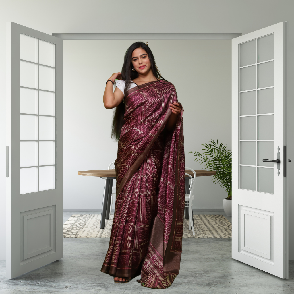 Jute Silk Saree with Digital Print and Maroon colour