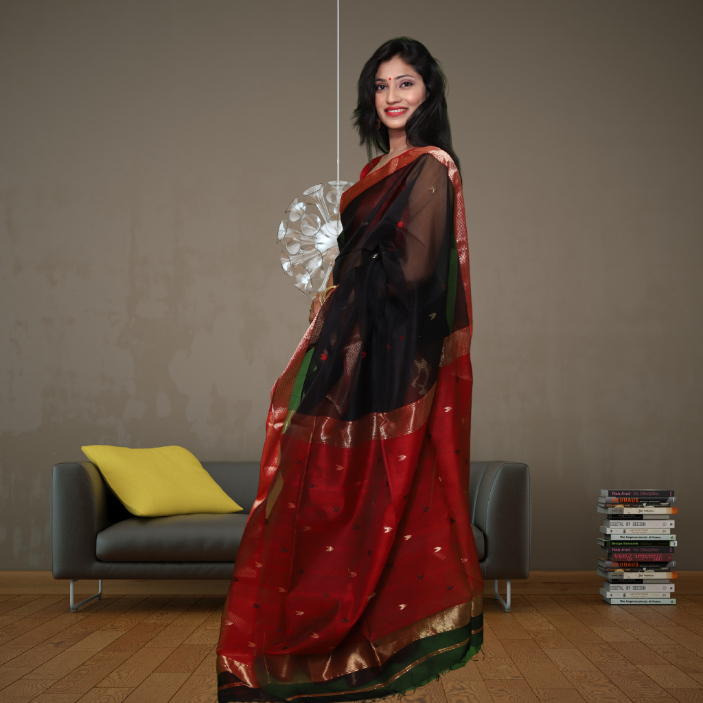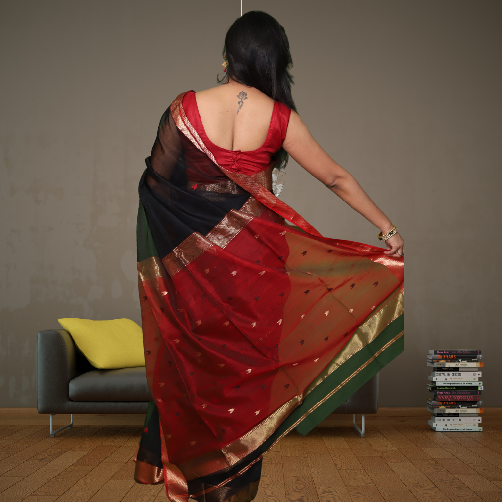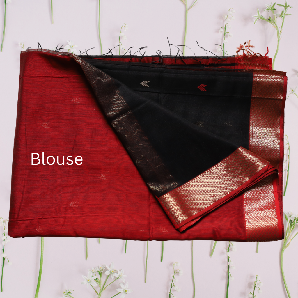 Maheshwari Silk by Cotton Arrow Bootie Black Saree