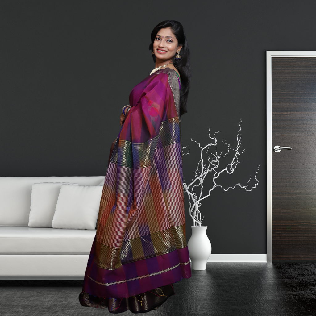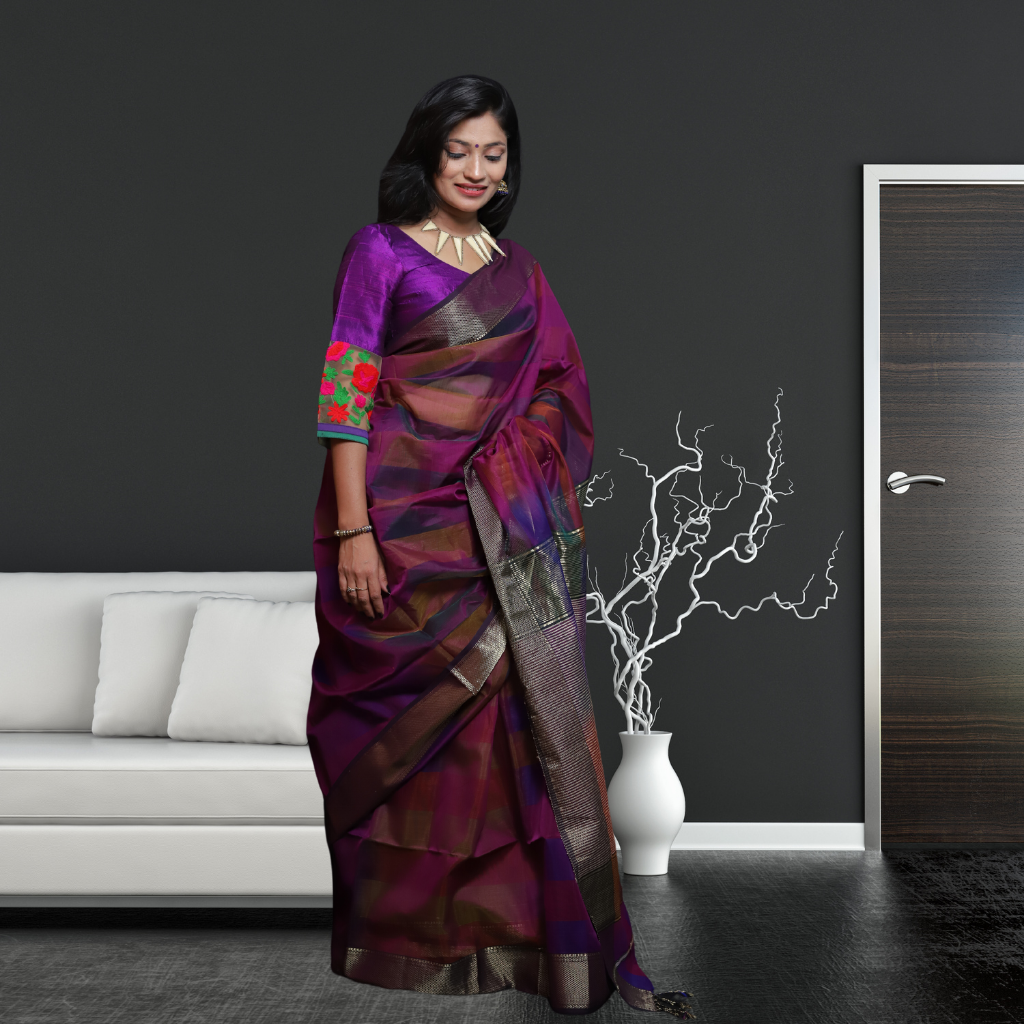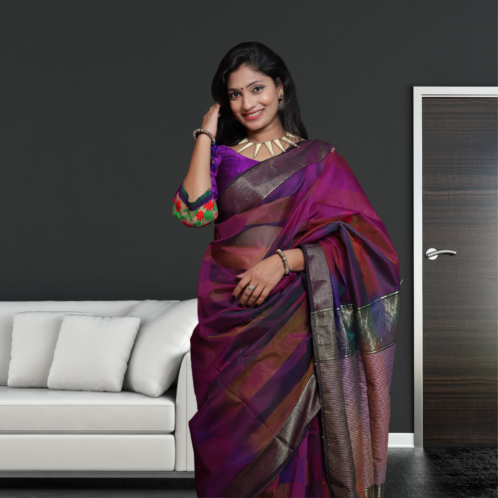 Maheshwari Silk by Cotton saree with Bootie and Purple colour