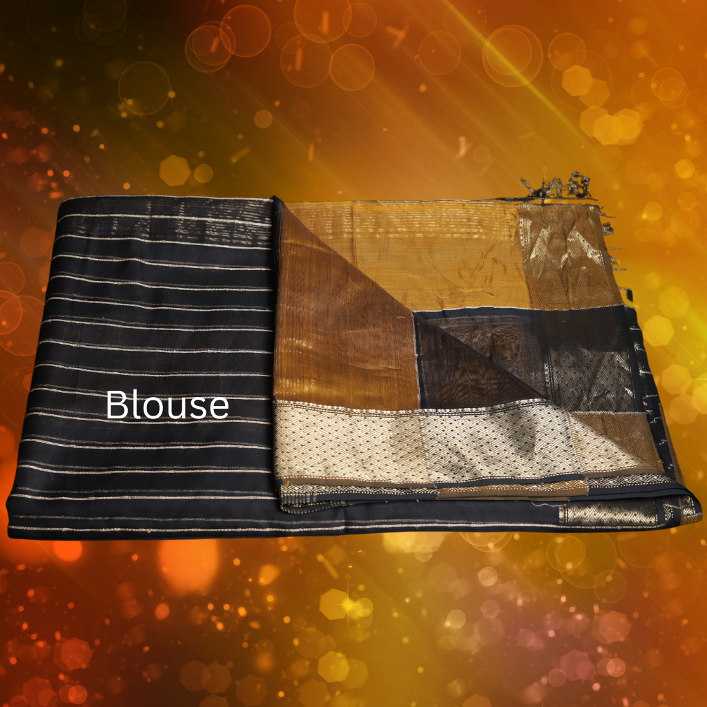 Maheshwari Silk by Cotton Saree with Yellow and Black Stripes