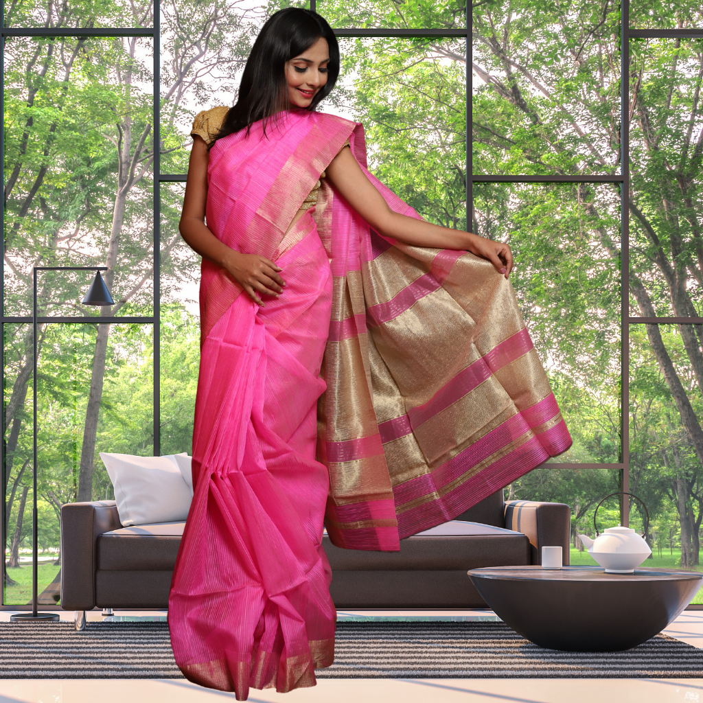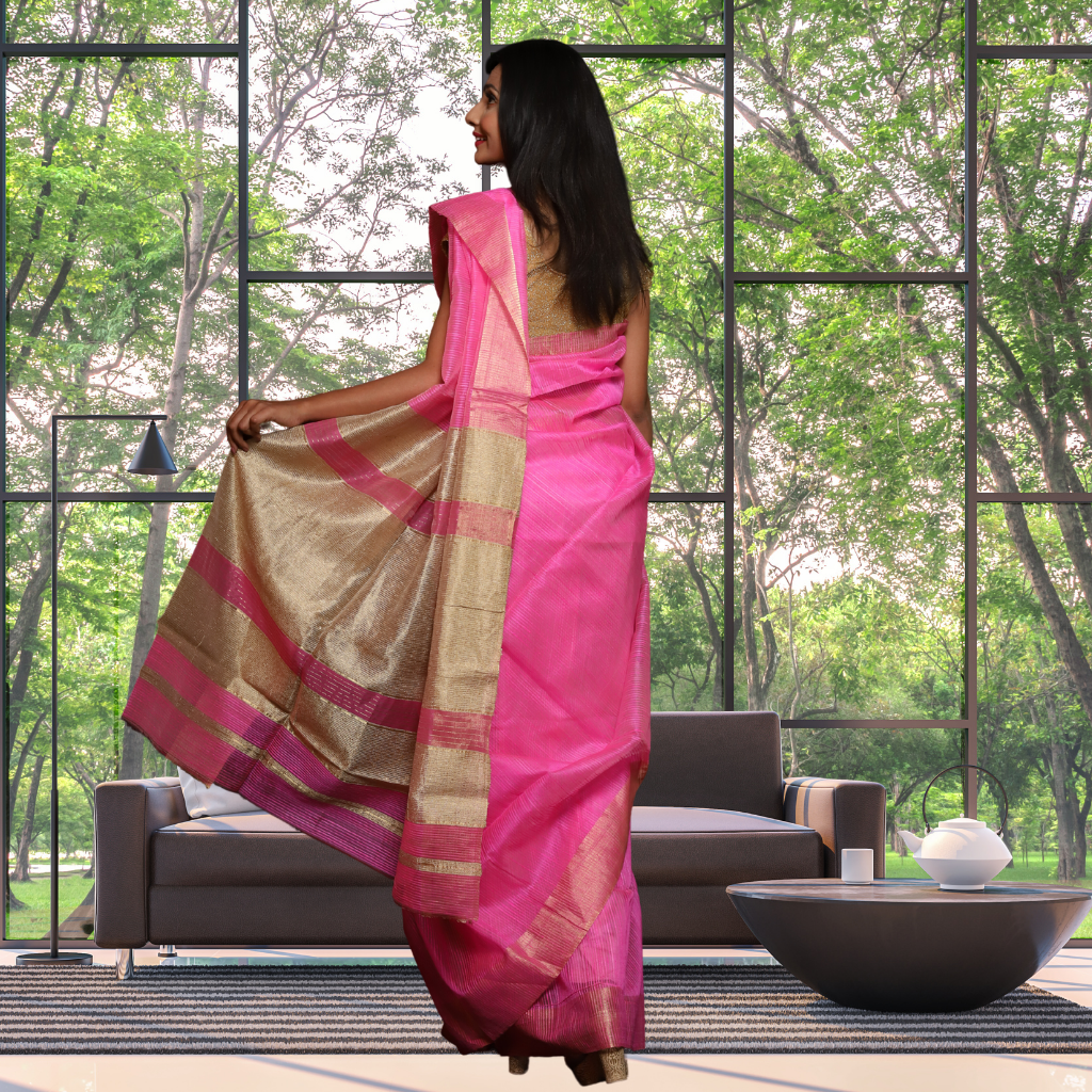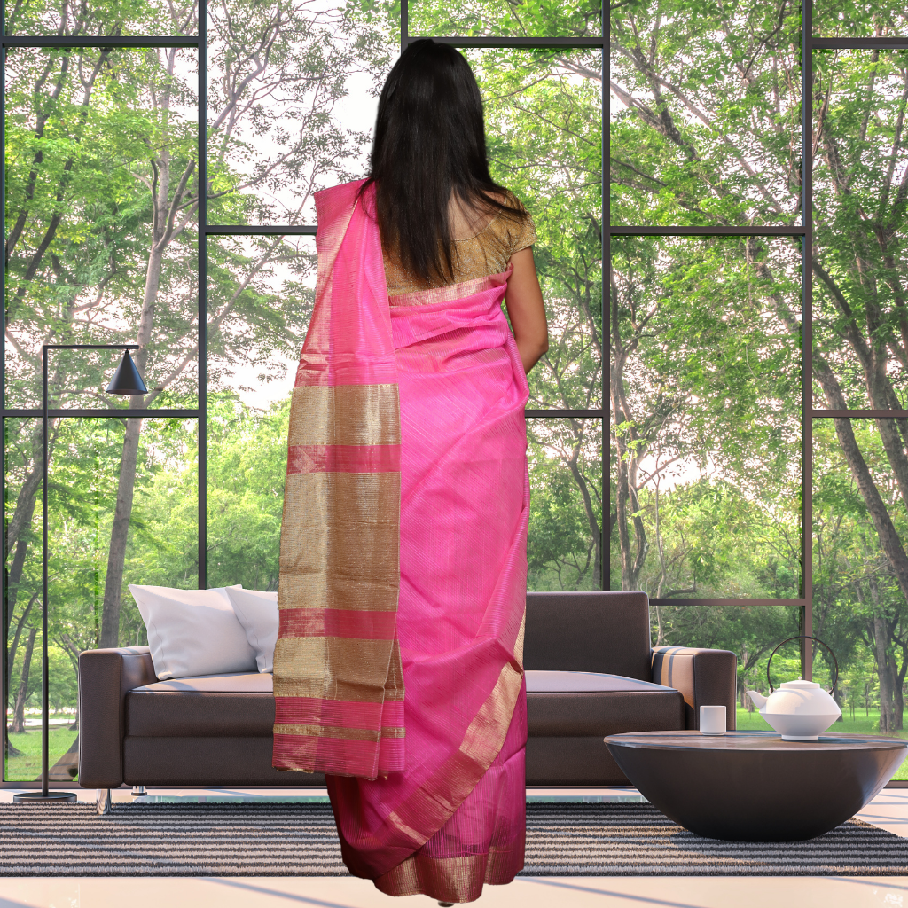 Matka Silk Saree with Pink Colour